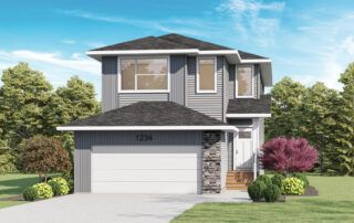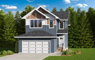 The Birkley is one of our largest home models at 2101 sqft. The main floor features a gorgeous L-shaped rear-plan kitchen with a large window over the sink and an oversized island. This plan features an open-concept living, dining, and kitchen area with large windows and an on-trend shiplap electric fireplace. Entering from the garage, you can drop your gear in the mudroom before entering the rest of the home. There is also a powder room and a storage room near the entrance. To cater to future expansion needs, this model comes with a side entrance, ideal for a potential basement suite.